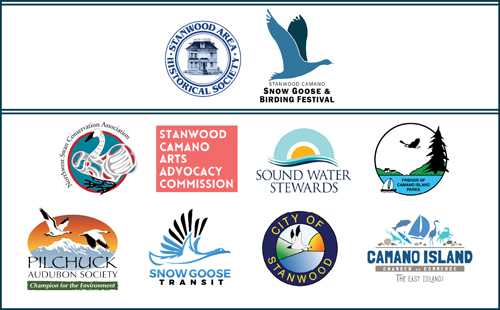 Camano Island Chamber of Commerce, City of Stanwood, Discover Stanwood Camano, Northwest Swan Conservation Assn., Pilchuck Audubon Society, Skagit Audubon, Snow Goose Transit, Sound Water Stewards, Friends of Camano Island Parks (FOCIP), Stanwood Camano Arts Advisory Commission (SCAAC) and the Stanwood Area Historical Society